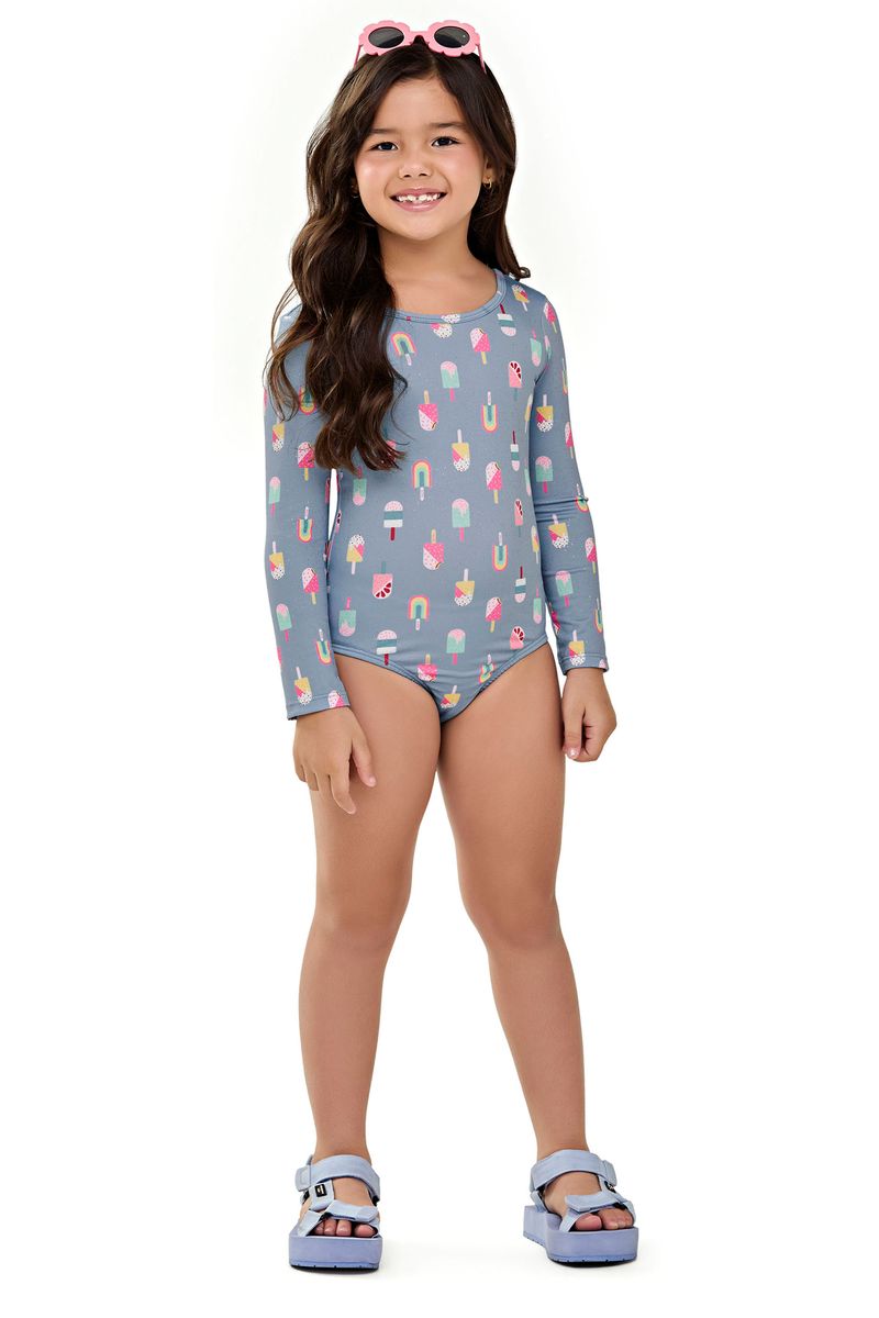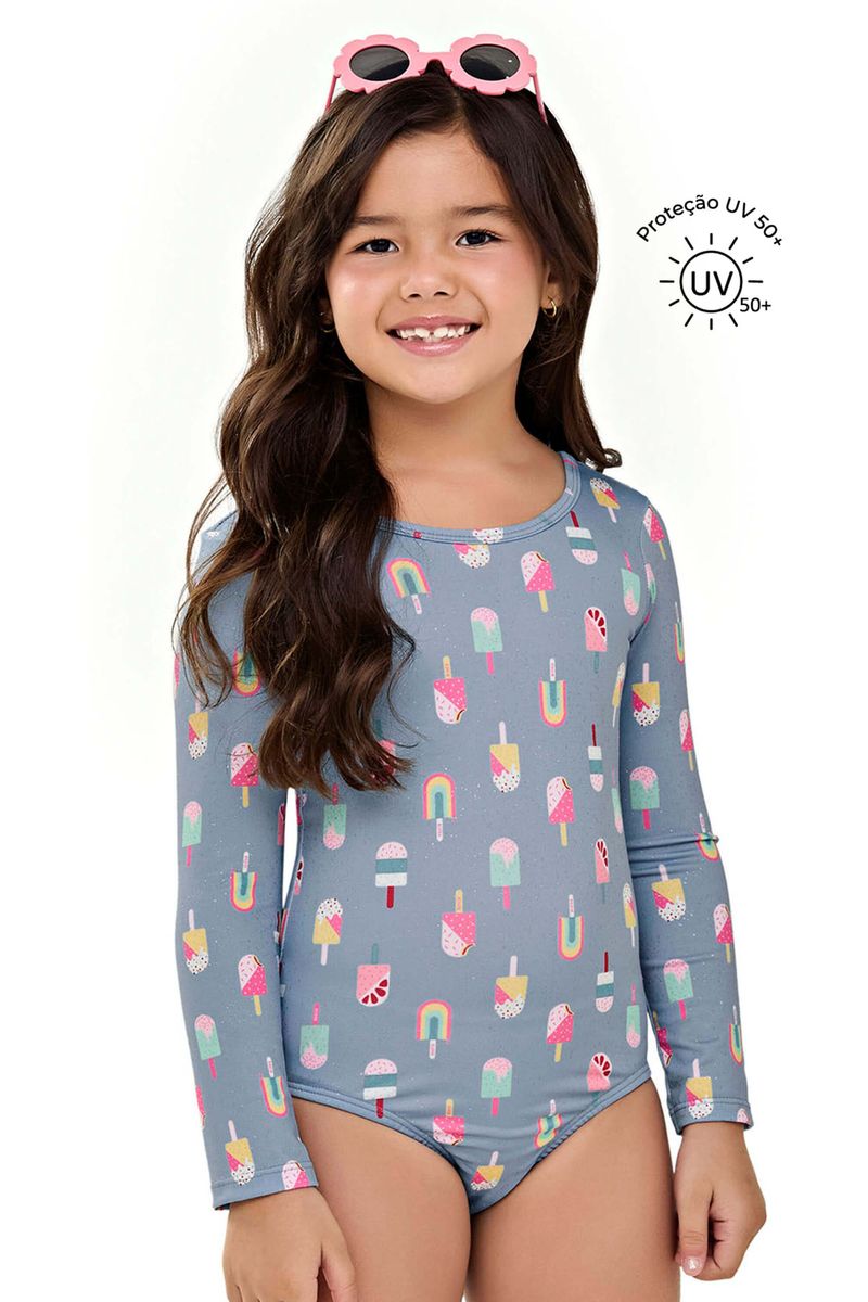 Maiô Infantil Menina Sorvetes Com Proteção Solar Elian Azul REF: 232156-6131