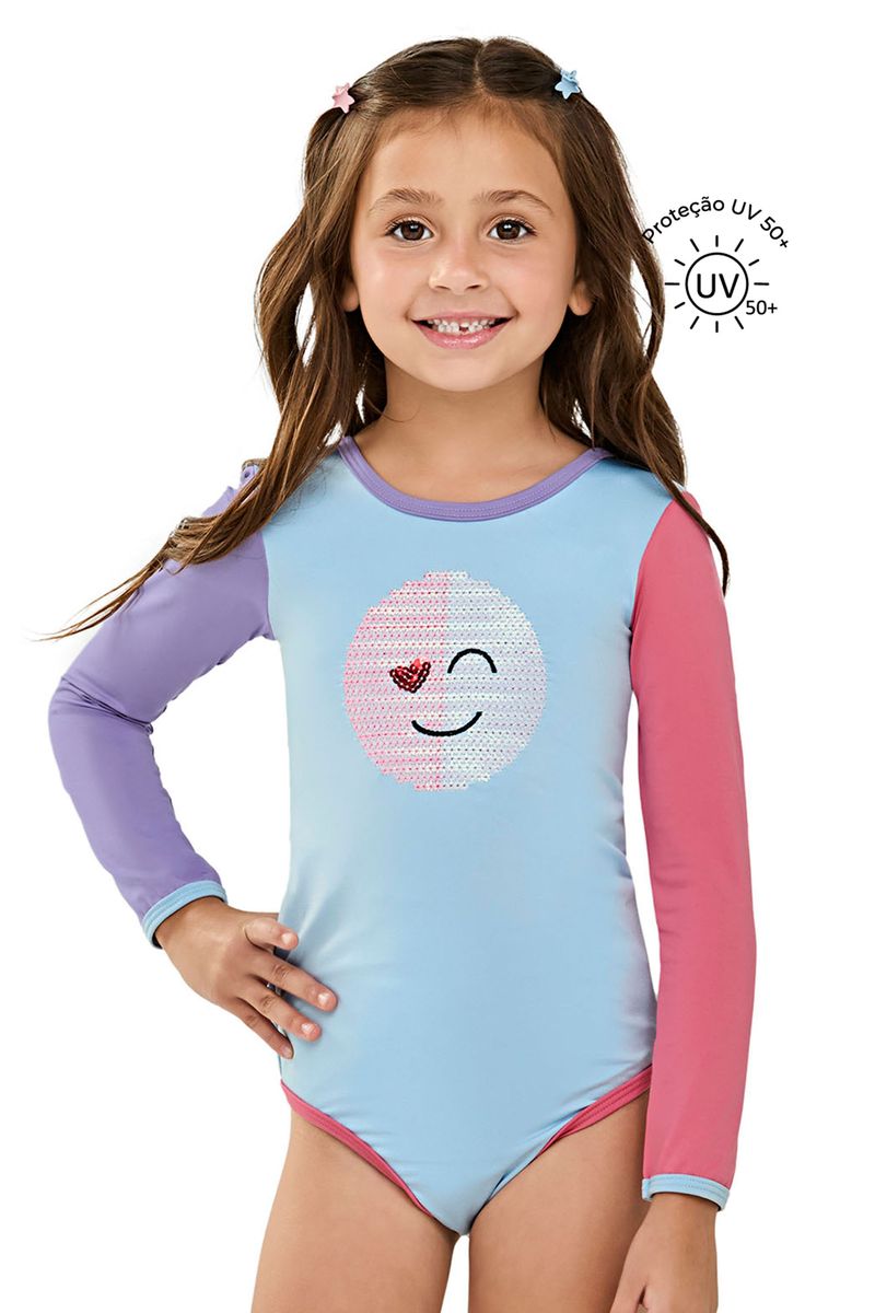 Maiô Infantil Menina Bordado Com Proteção Solar Elian Azul REF: 232157-6026