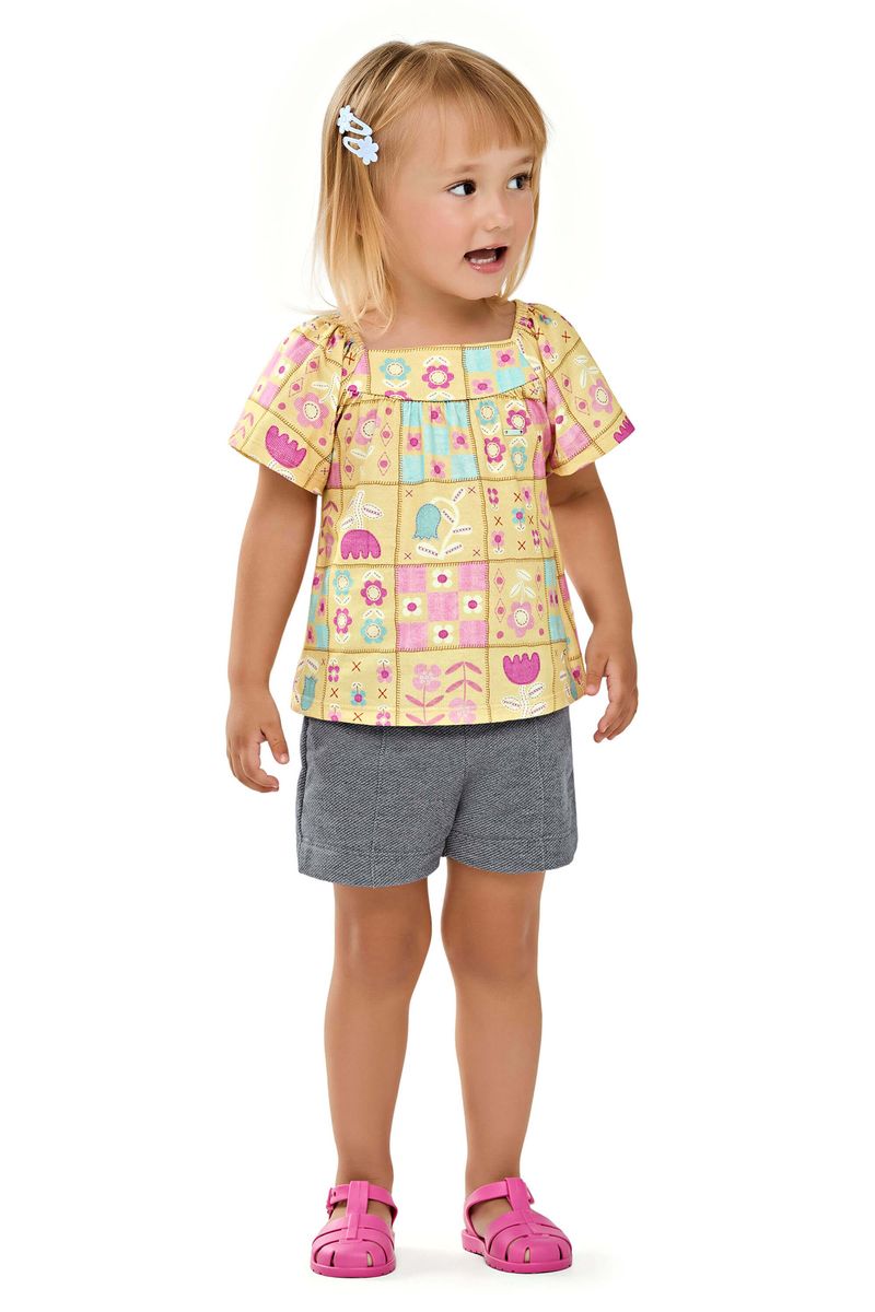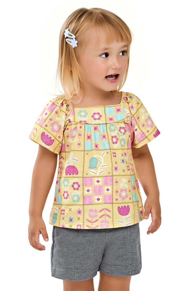 Conjunto Curto Infantil Menina Flores Elian Amarelo REF: 232169-3100