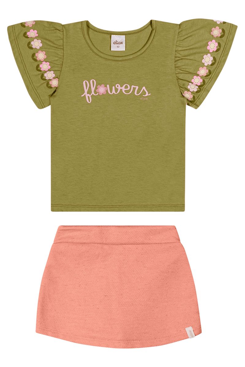Conjunto Infantil Menina Blusa Flores e Short Saia Elian Verde REF: 232173-5649