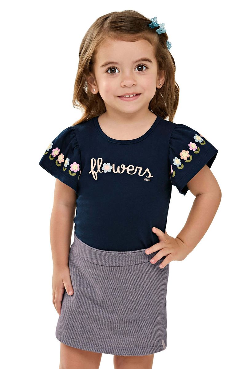 Conjunto Infantil Menina Blusa Flores e Short Saia Elian Azul REF: 232173-6751
