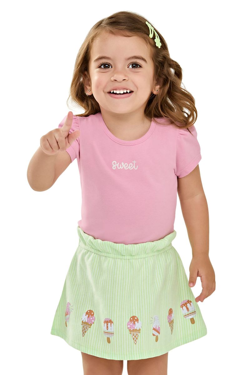 Conjunto Infantil Menina Blusa e Saia Sorvetes Elian Rosa REF: 232177-4022
