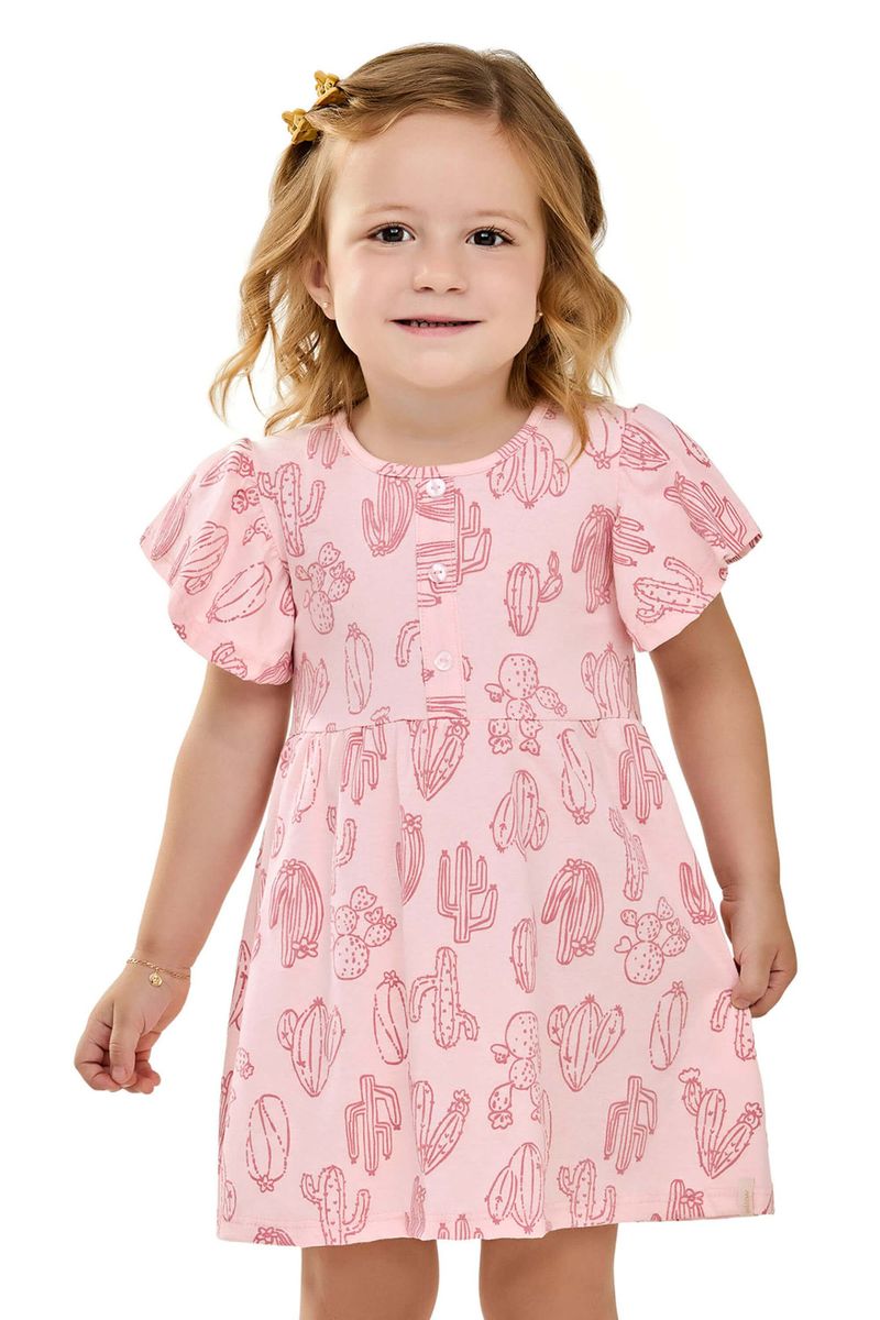 Vestido Infantil Menina Mangas Curtas Cactos Elian Rosa REF: 232179-4118