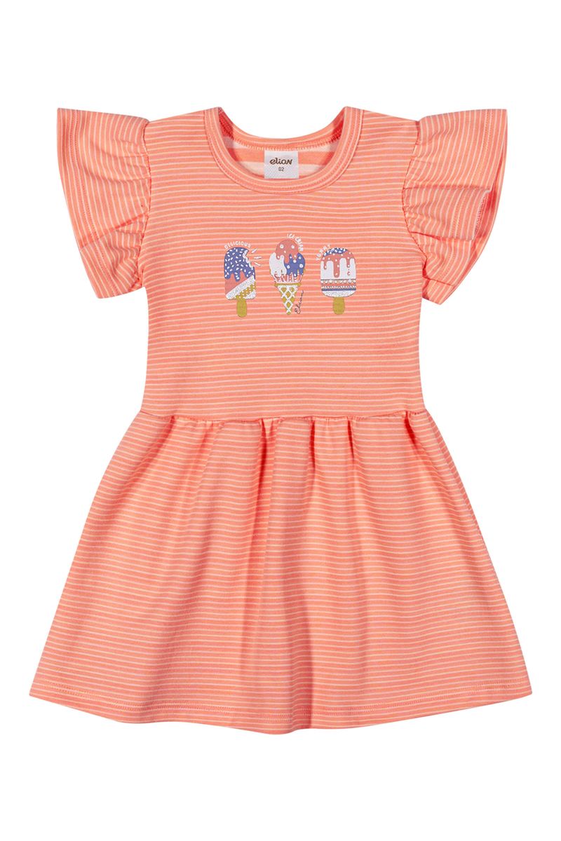 Vestido Infantil Menina Listrado Sorvetes Elian Laranja REF: 232187-3470