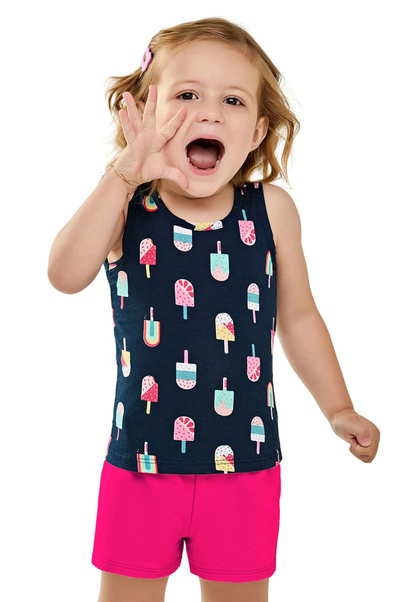 InfantilMeninasConjuntos MeninasConjunto Infantil Menina Regata Sorvetes e Short Elian Azul
