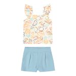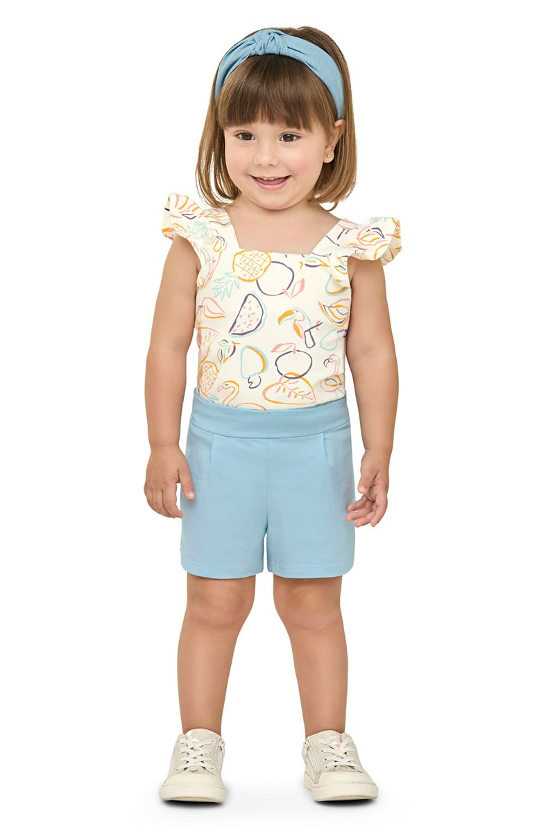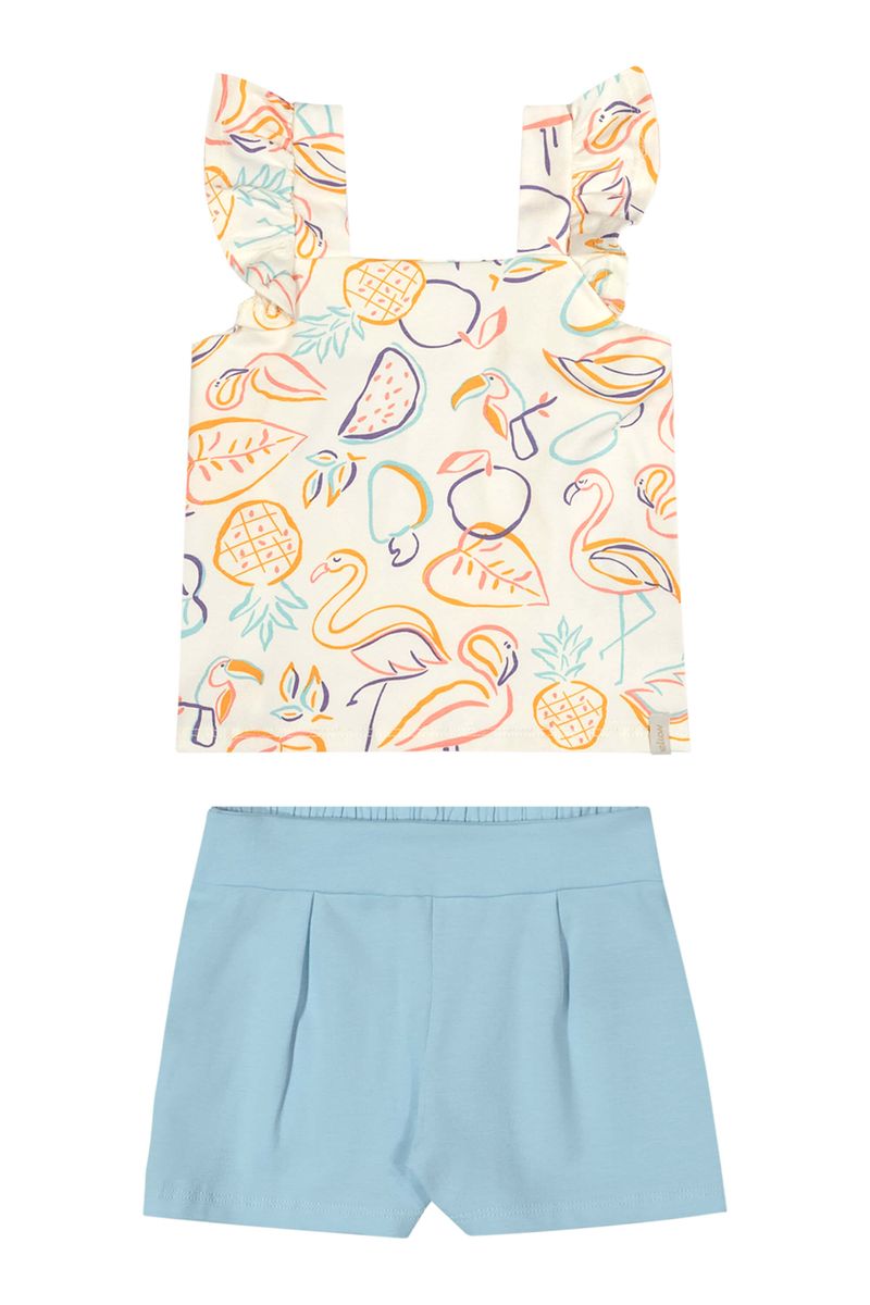 • Conjunto composto por regata e short • Feito em cotton leve • Alças com babados • Estampa com desenhos tropicais • Elástico no cós • Ideal para passeios e brincadeiras ao ar livre