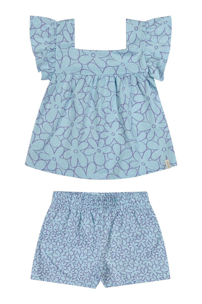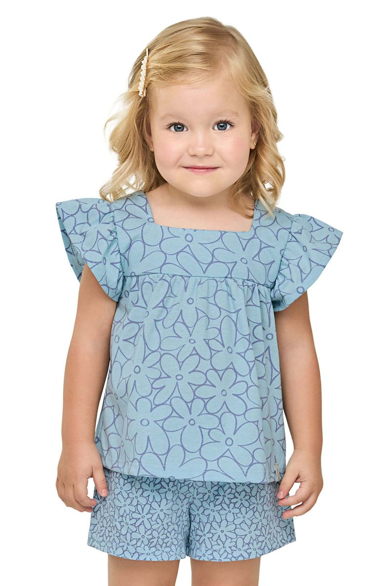 InfantilMeninasConjuntos MeninasConjunto Infantil Menina Decote Quadrado Elian Azul