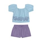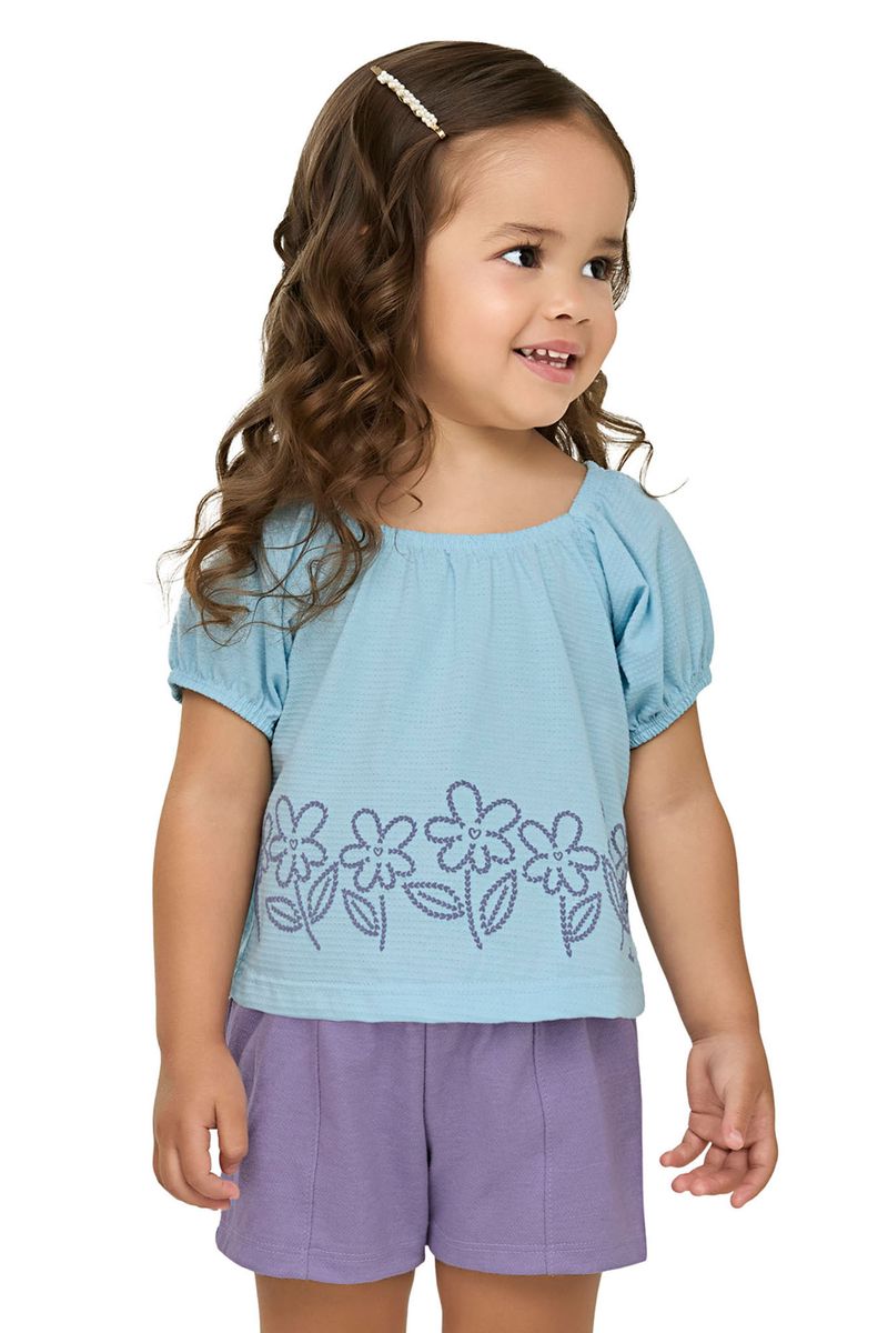 Conjunto Infantil Menina Flor em Puff Elian Azul REF: 232210-6026