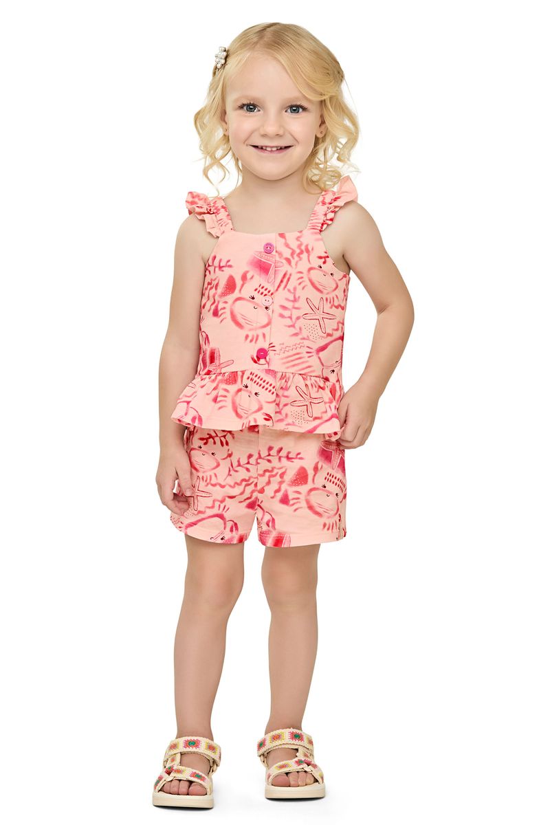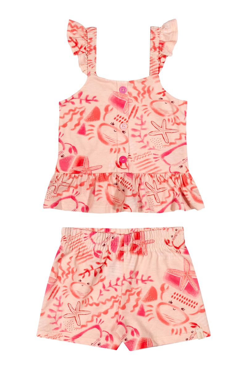 • Conjunto composto por regata e short • Feito em meia malha • Alças com babados • Estampa de caranguejo e elementos do fundo do mar • Elástico no cós • Ideal para momentos de lazer