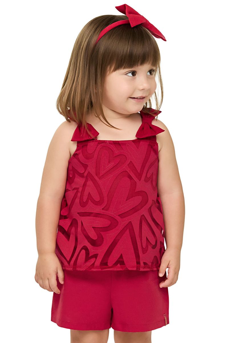 InfantilMeninasConjuntos MeninasConjunto Infantil Menina Tule Corações Elian Vermelho