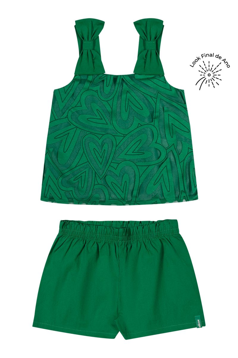 Conjunto Infantil Menina Tule Corações Elian Verde REF: 232214-5533
