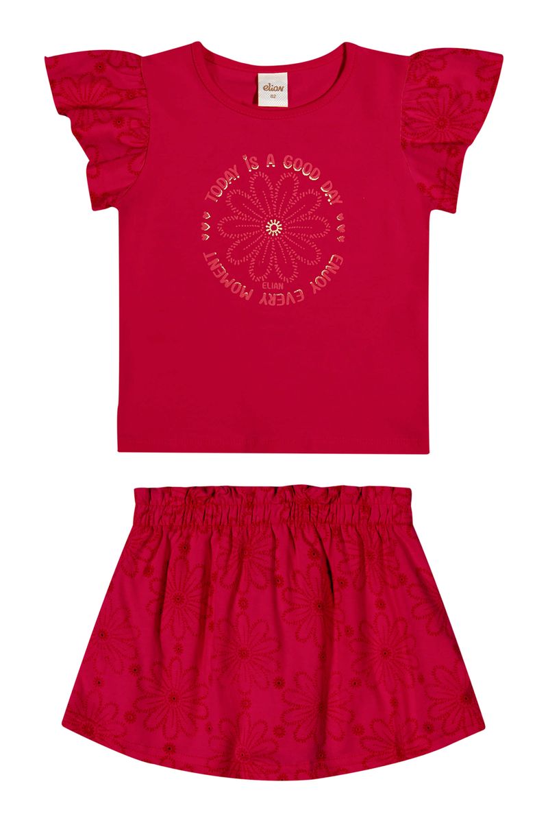 InfantilMeninasConjuntos MeninasConjunto Infantil Menina Estampa em Puff Elian Vermelho