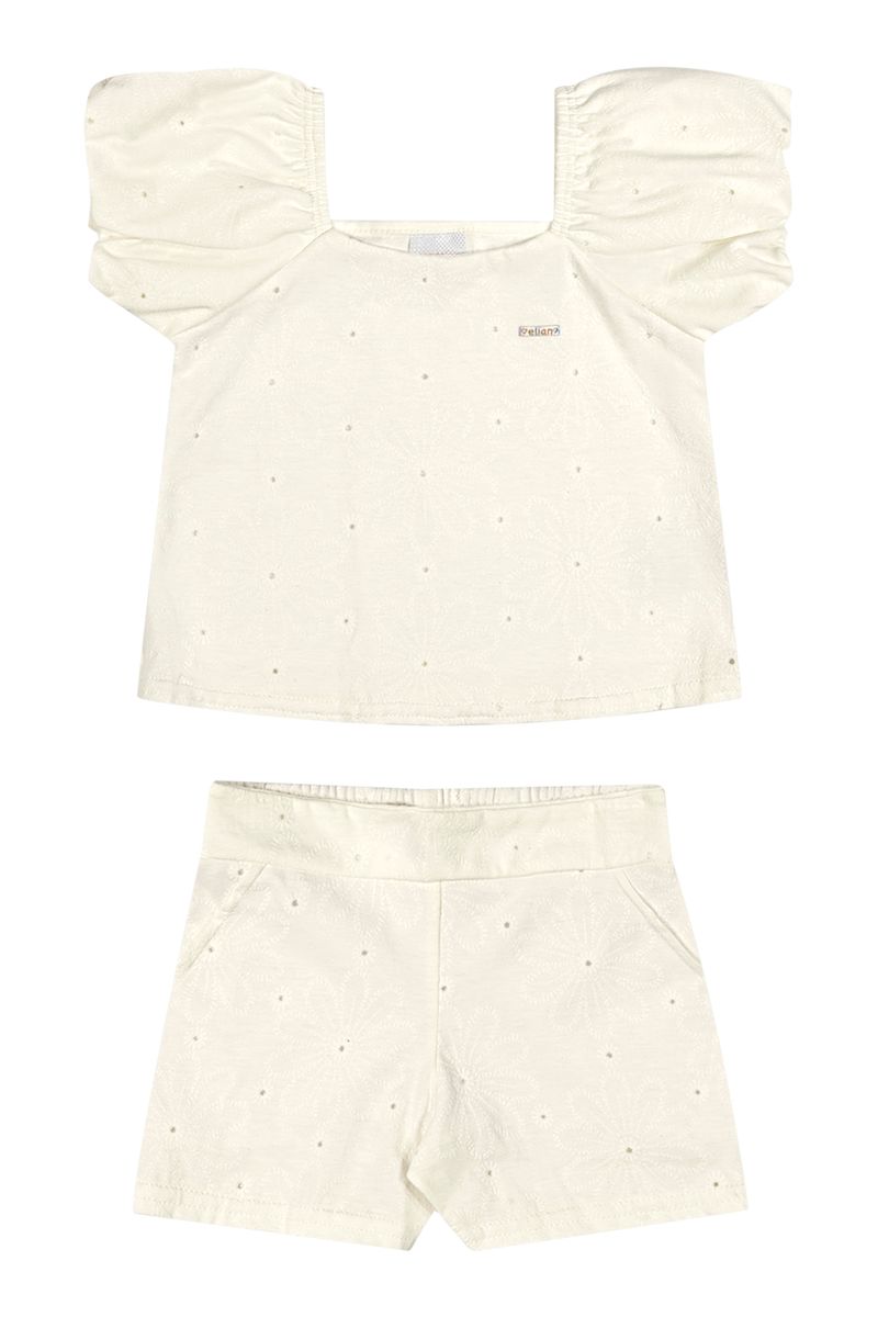 Conjunto Infantil Menina Floral Devorê Elian Bege REF: 232220-2037