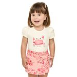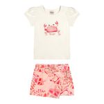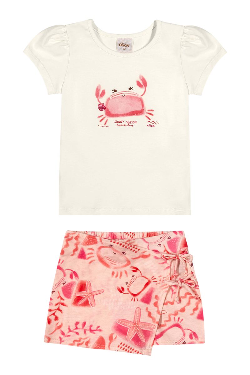 • Conjunto composto por blusa e short saia • Feito em cotton leve e meia malha • Mangas curtas com franzidos • Estampa de caranguejo e elementos do fundo do mar • Elástico no cós • Saia transpassada com amarração lateral em laço • Ideal para passeios e momentos de lazer