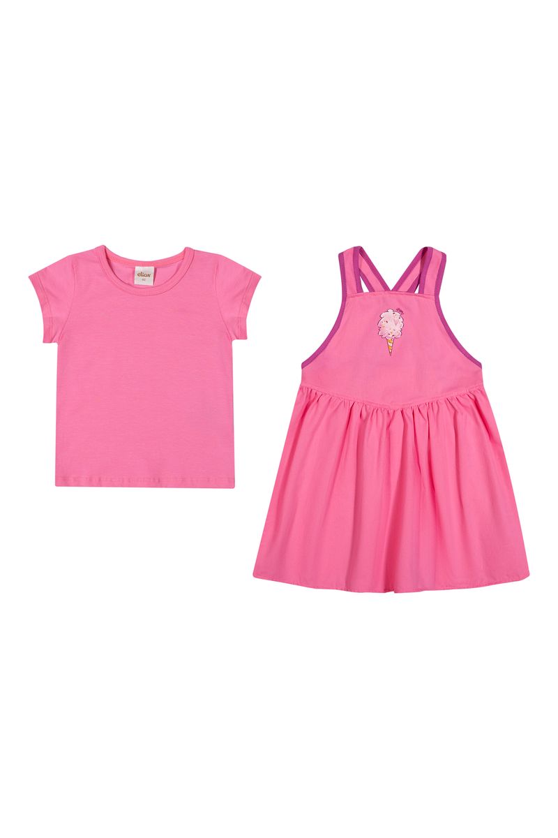 InfantilMeninasVestidos MeninasConjunto Infantil Menina Algodão Doce Elian Rosa
