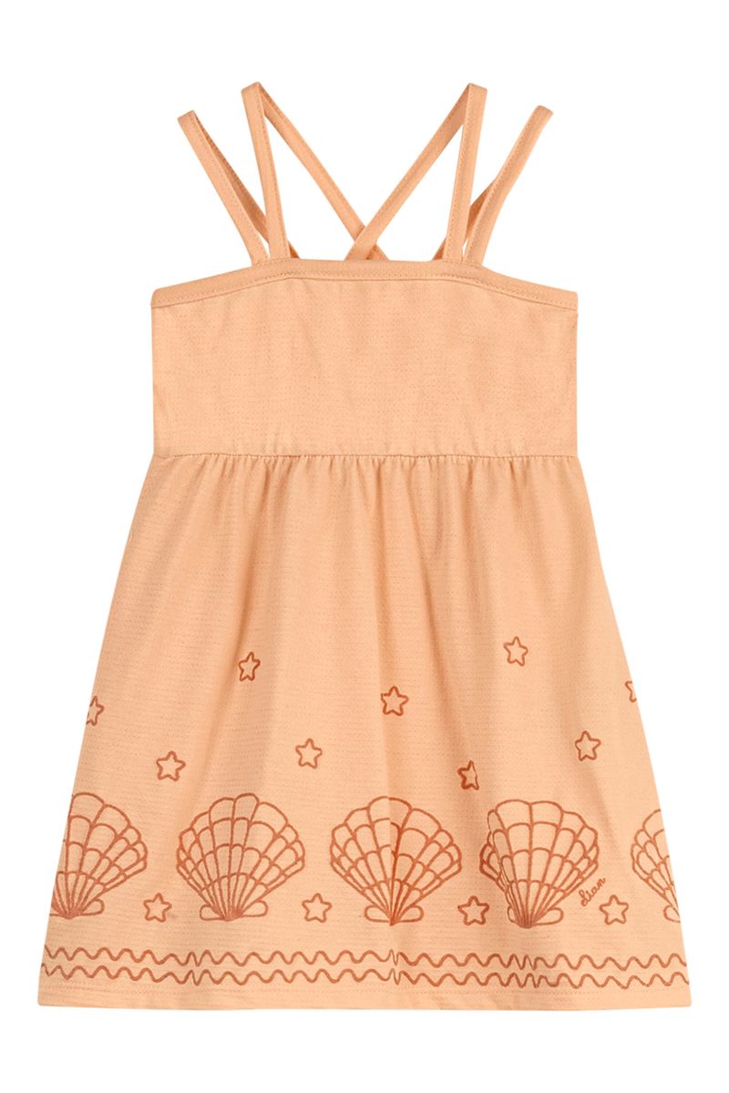 • Feito em malha trabalhada • Possui alças duplas com transpasse nas costas • Estampa de conchinhas com efeito puff • Modelagem soltinha • Ideal para ocasiões mais arrumadas