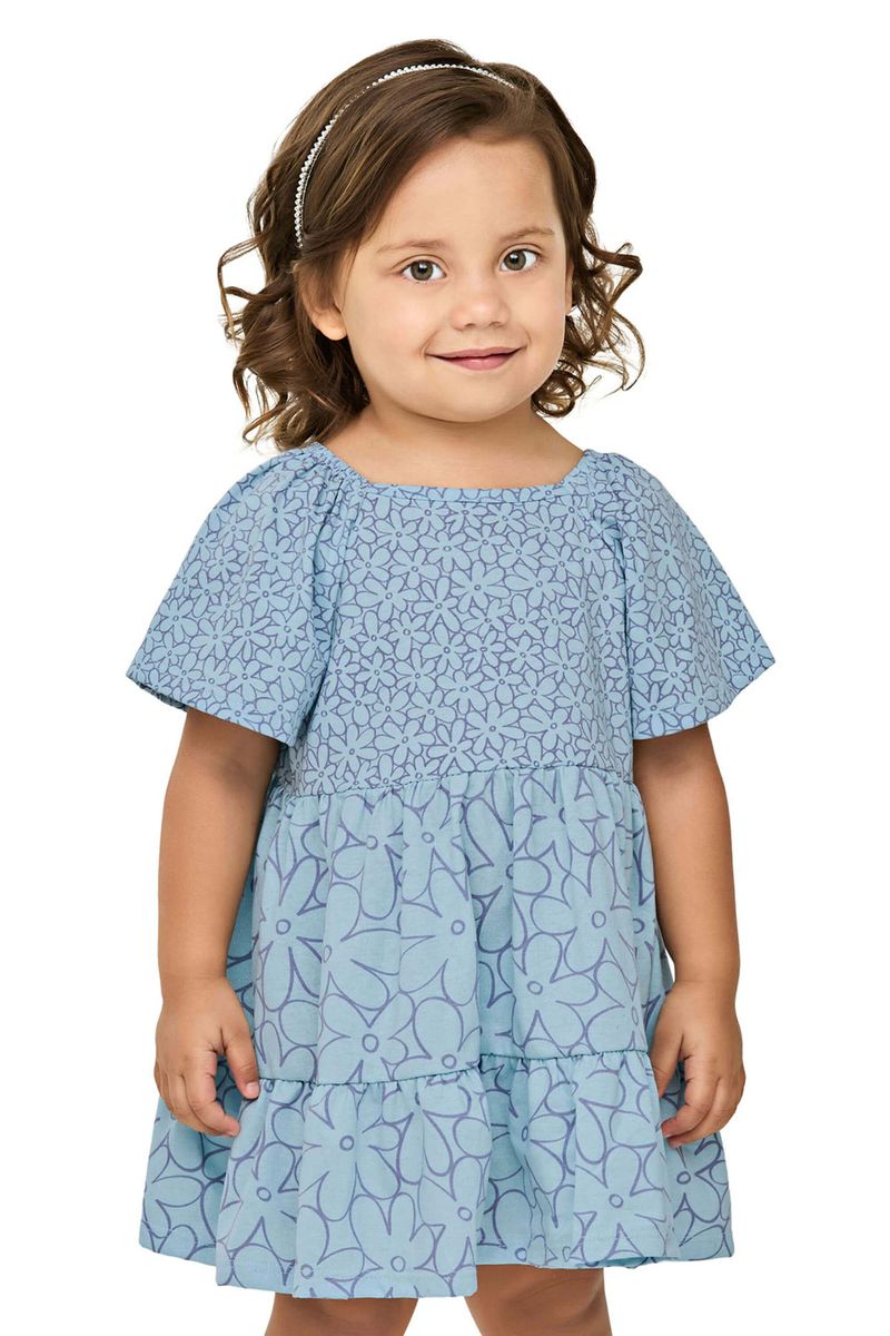 InfantilMeninasVestidos MeninasVestido Infantil Menina Floral Perolado Elian Azul