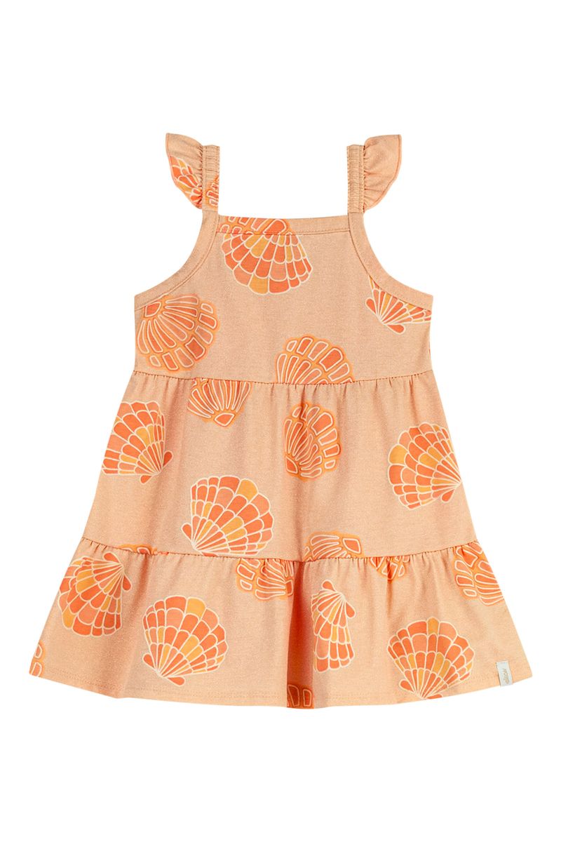 • Feito em meia malha • Possui alças com babados • Estampa de conchinhas com efeito perolado • Modelagem soltinha • Ideal para passeios em dias de sol