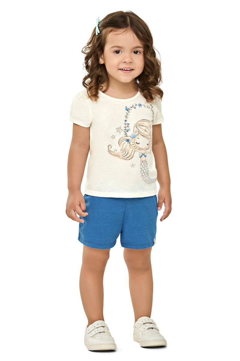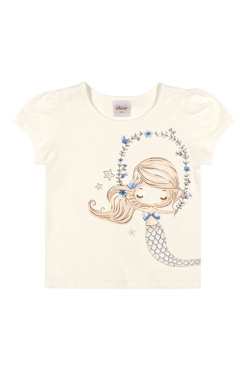 • Feito em meia malha • Possui mangas curtas com franzido • Estampa de sereia com detalhes em glitter • Ideal para passeios e momentos de diversão