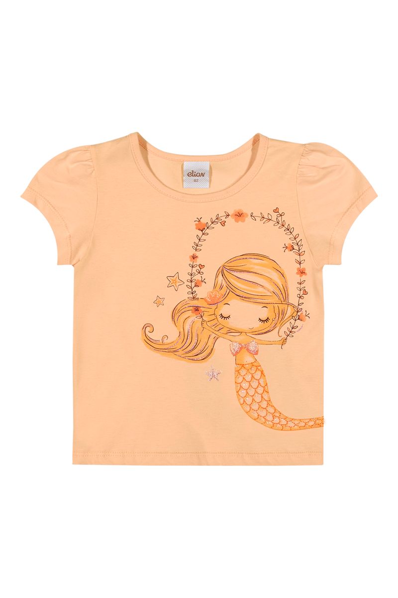 • Feito em meia malha • Possui mangas curtas com franzido • Estampa de sereia com detalhes em glitter • Ideal para passeios e momentos de diversão
