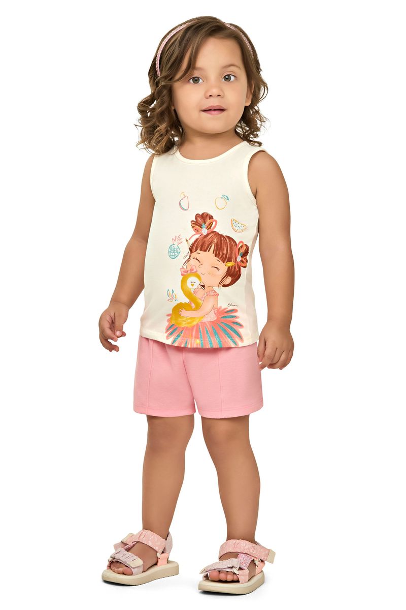 • Feito em cotton leve • Modelagem tradicional • Estampa com uma menininha e flamingo • Detalhes em glitter • Ideal para momentos de brincadeira