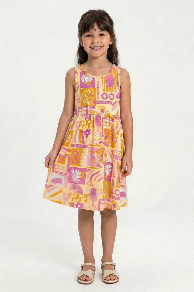 • Feito em cotton leve • Modelagem regata • Possui recorte franzido na cintura • Possui estampa delicada • Ideal para passeios e momentos de lazer