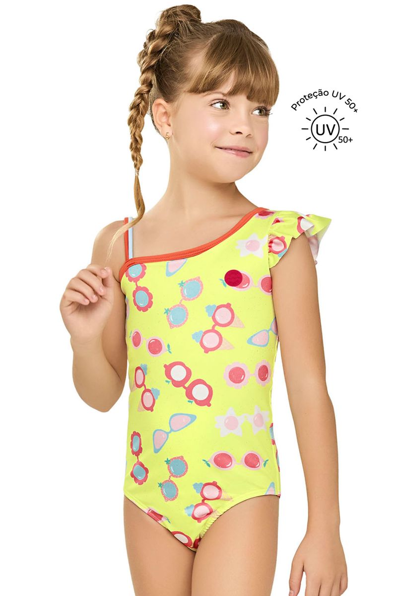 • Feito em malha de proteção UV +50 • Modelagem ombro único com alças duplas • Estampa lúdica com glitter • Etiqueta emborrachada • Possui forro interno • Ideal para a praia ou piscina