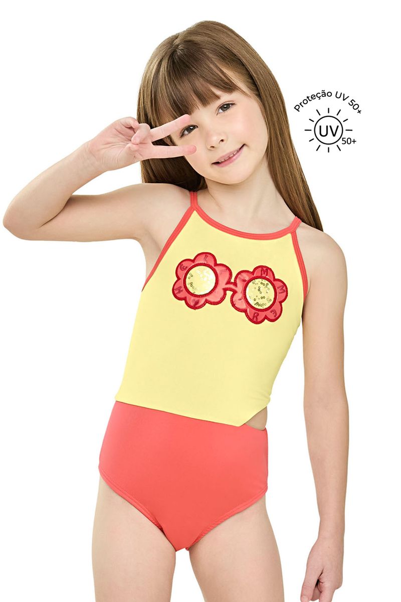 • Feito em malha de proteção UV +50 • Bordado com aplique plástico e lantejoulas soltas • Tem recorte bicolor e abertura lateral • Etiqueta emborrachada • Possui forro interno • Ideal para a praia ou piscina