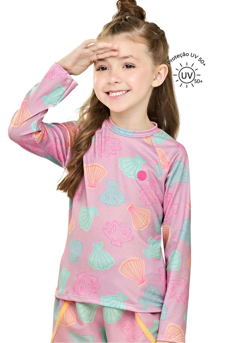 • Feito em malha de proteção UV +50 • Mangas longas • Estampa em toda a peça • Etiqueta emborrachada • Ideal para praia ou piscina