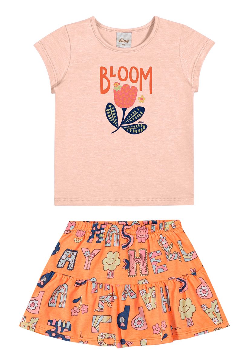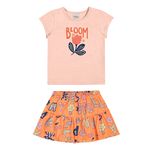 • Conjunto composto por blusa e saia • Feito em cotton leve e meia malha • Possui mangas curtas • Possui estampa de florzinha • Possui detalhes em puff e brilho • Possui elástico no cós • Possui short interno • Ideal para passeios e momentos de lazer