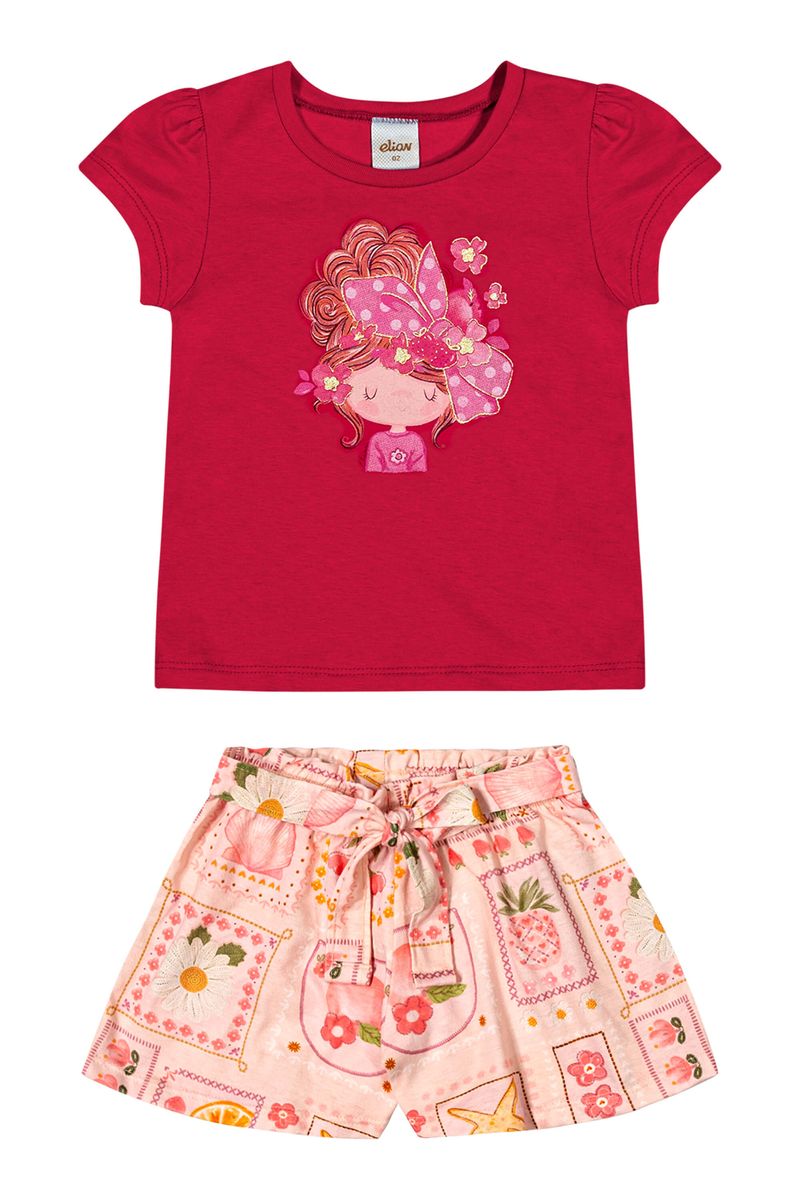 Conjunto Infantil Menina Ilustrado Brilho Elian Vermelho REF: 232287-4580