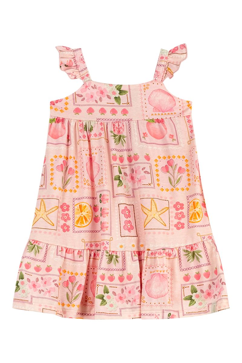 • Feito em meia malha • Possui alças com babados • Possui estampa com elementos do verão • Possui modelagem soltinha • Ideal para passeios e festinhas