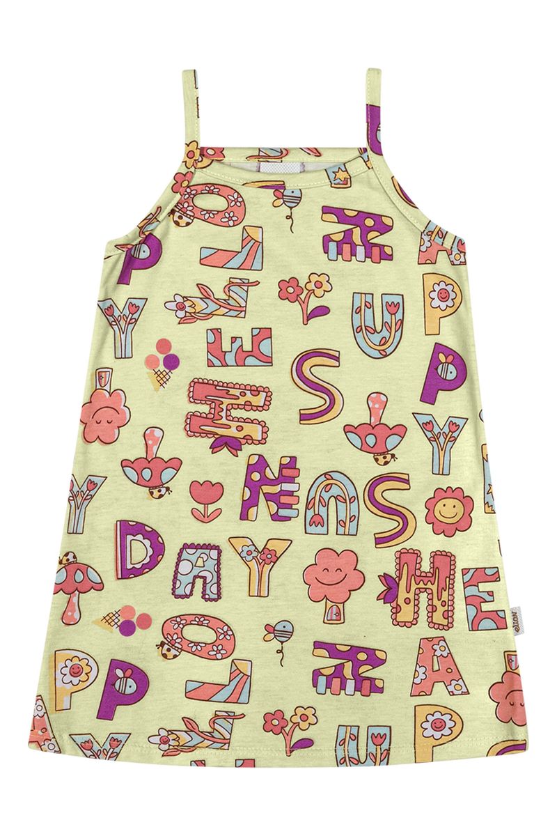 • Feito em meia malha estampada • Possui modelagem soltinha • Possui alças • Possui estampa lúdica • Ideal para dias de sol e momentos em família