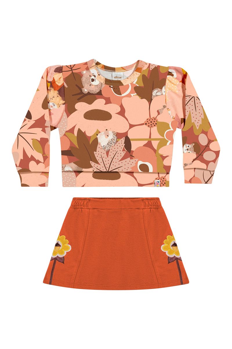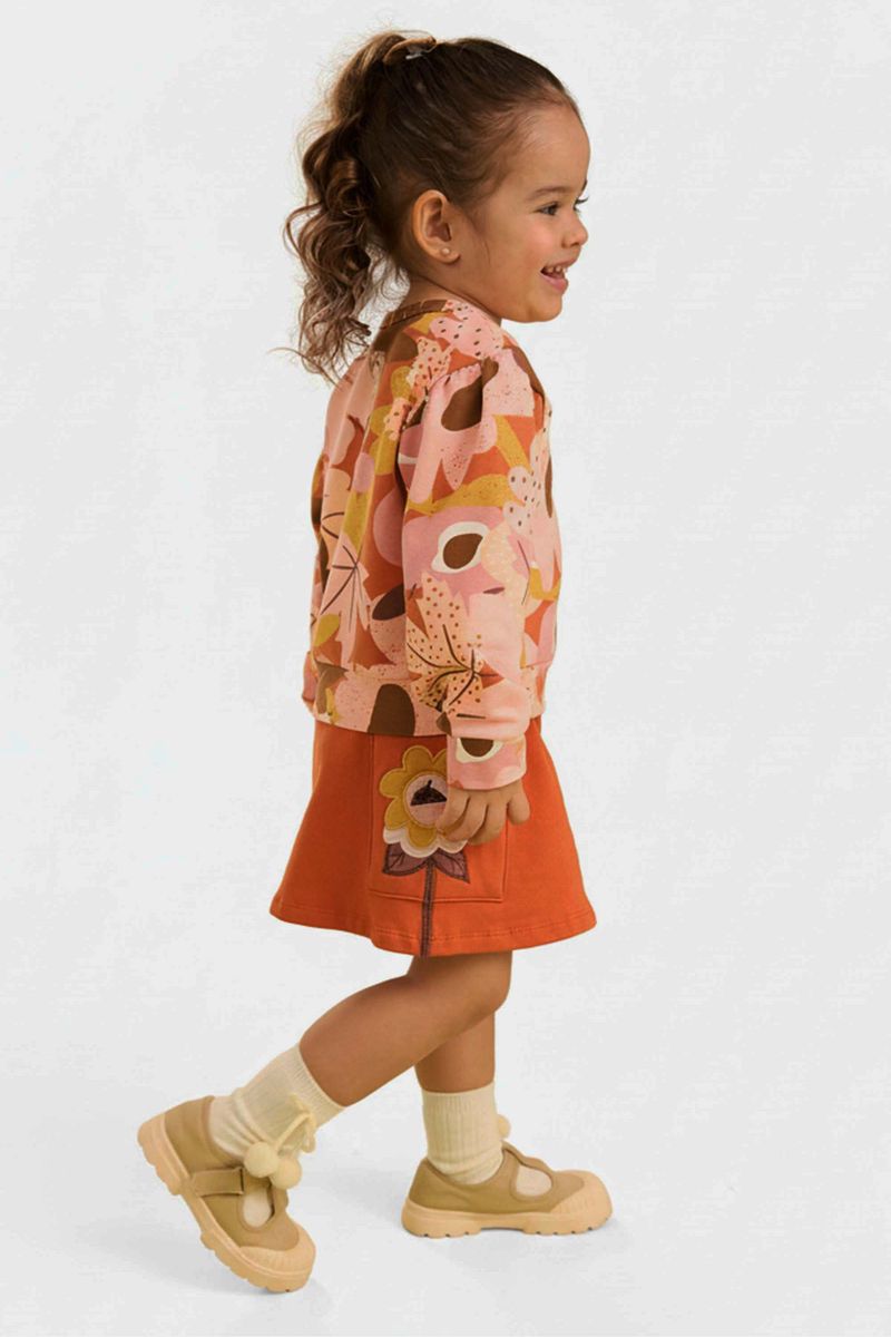 Conjunto Manga Longa Infantil Menina Floral Elian Laranja REF: 232336-3059