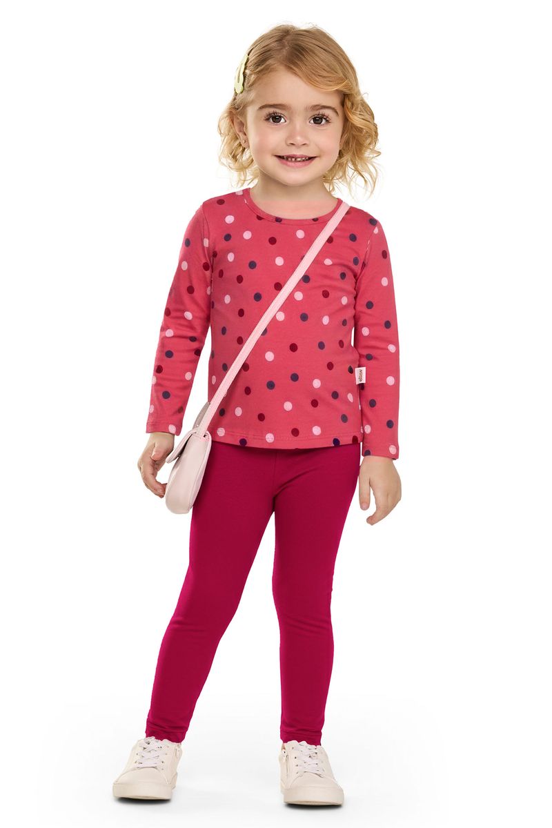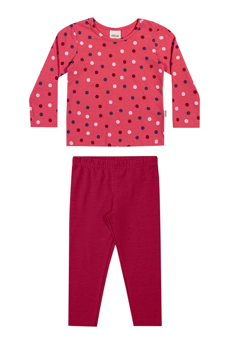 • Conjunto composto por blusa e calça legging • Feito em cotton leve • Possui mangas longas • Estampa de poás • Elástico no cós • Ideal para o dia a dia e brincadeiras