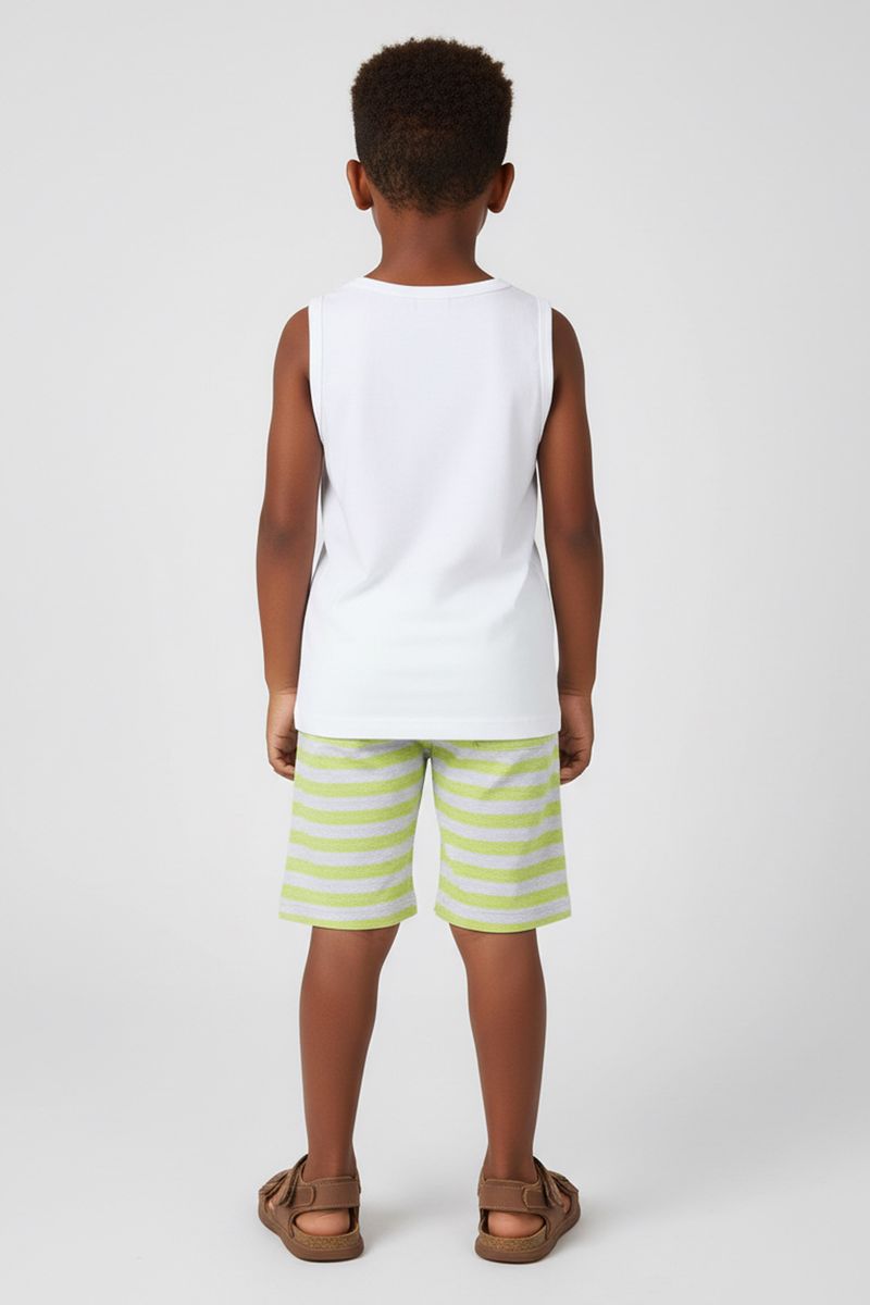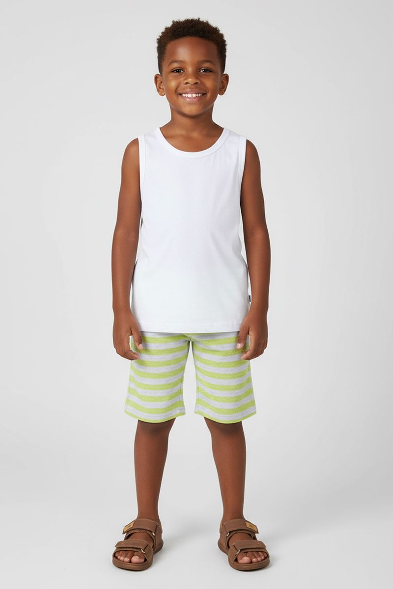 • Feita em moletinho royale listrado • Possui elástico no cós • Possui estampa em toda a peça • Ideal para brincadeiras, passeios e momentos de lazer