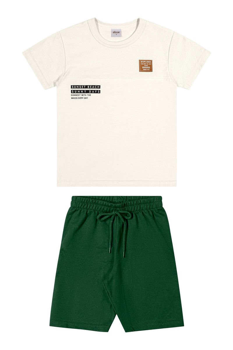 Conjunto Curto Infantil Menino Com Textura Elian Bege REF: 241388-2037