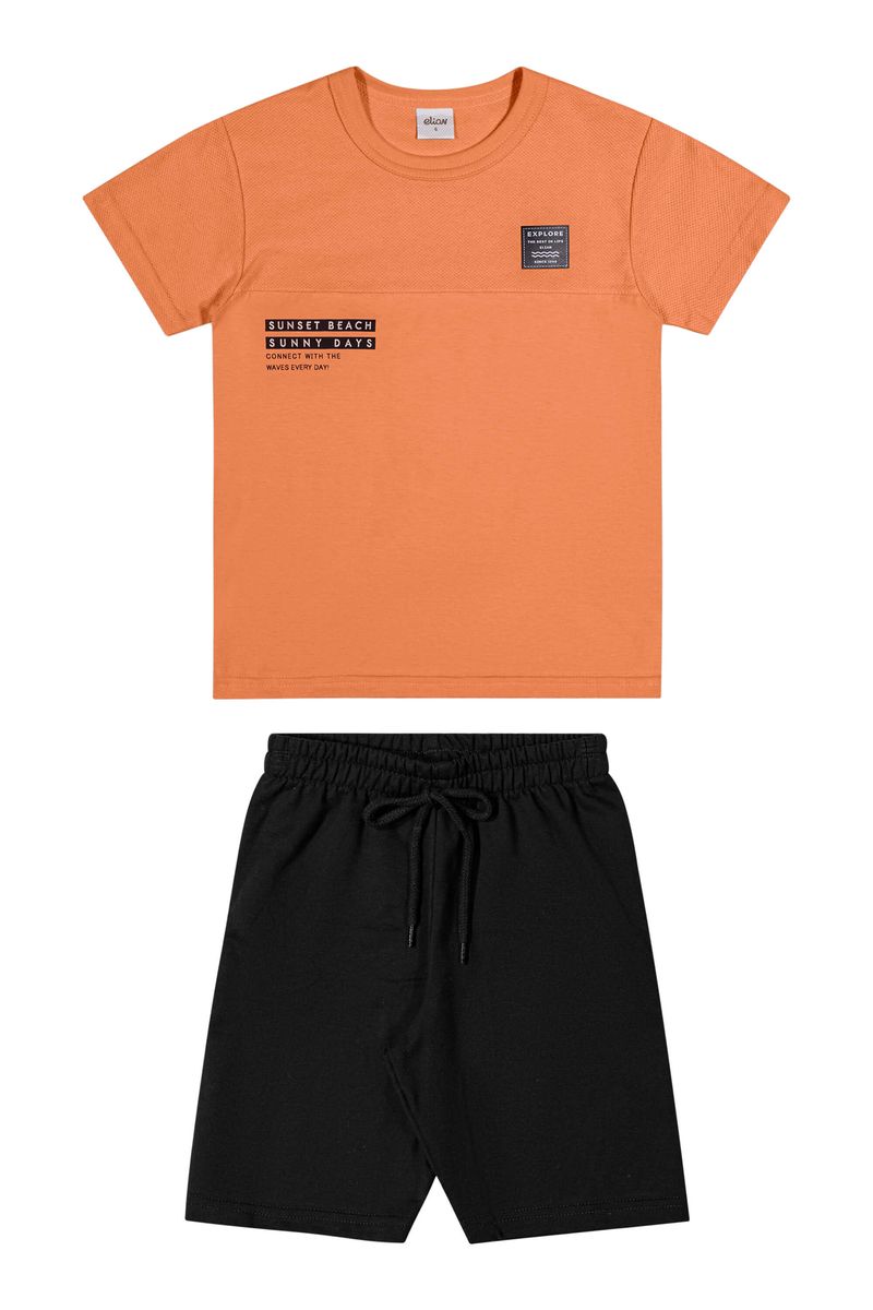 Conjunto Curto Infantil Menino Com Textura Elian Laranja REF: 241388-3071