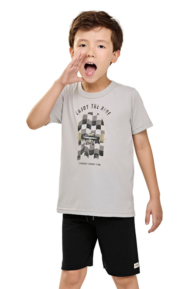 Conjunto Curto Infantil Menino Skate Elian Cinza REF: 241391-7008
