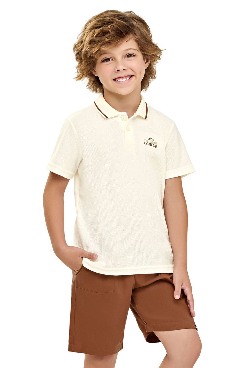InfantilMeninosConjuntos MeninosConjunto Infantil Menino Polo Malha Trabalhada Elian Bege