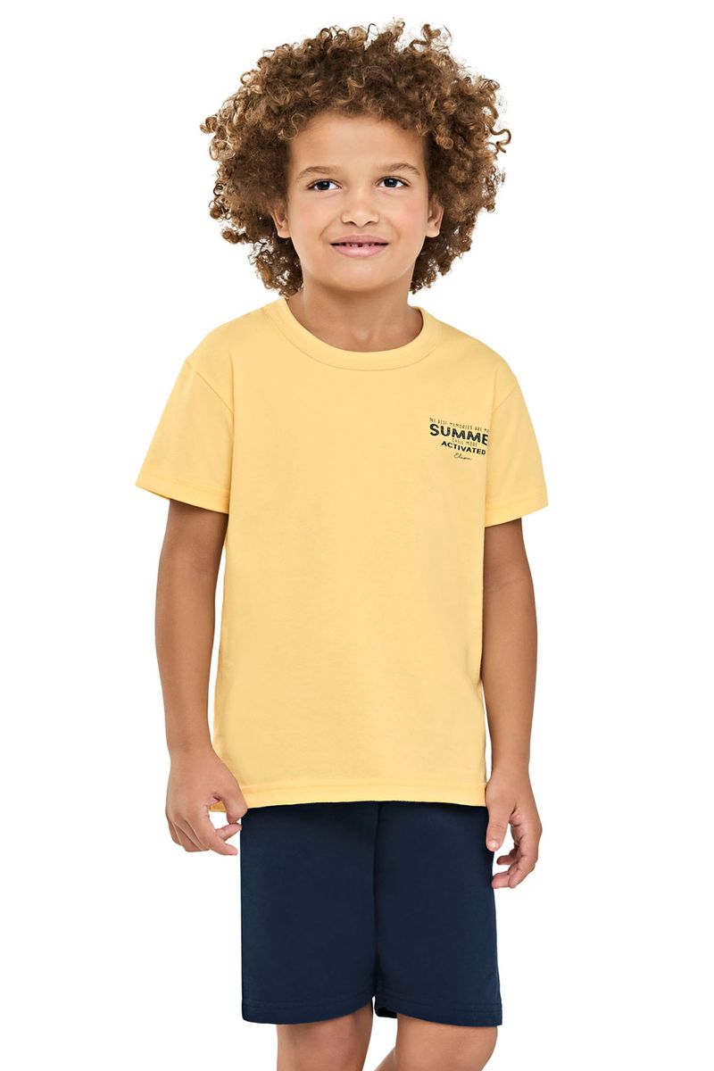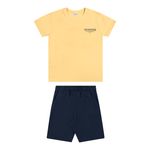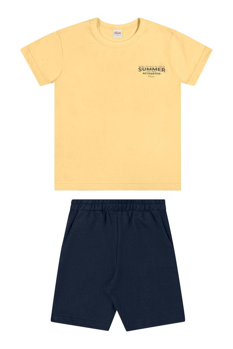 • Conjunto composto por camiseta e bermuda • Feito em meia malha e moletinho • Estampa destaque nas costas • Elástico no cós • Possui bolsos • Ideal para momentos descontraídos