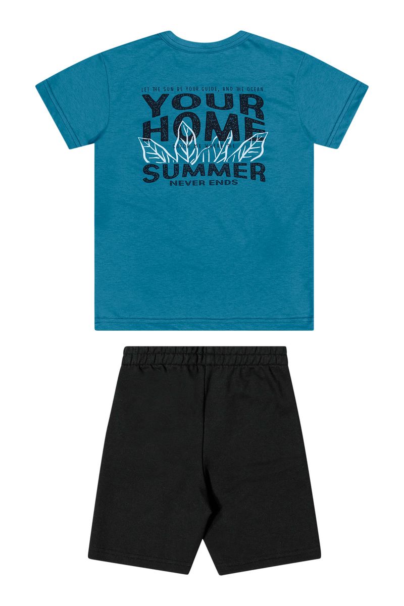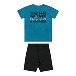 • Conjunto composto por camiseta e bermuda • Feito em meia malha e moletinho • Estampa destaque nas costas • Elástico no cós • Possui bolsos • Ideal para momentos descontraídos