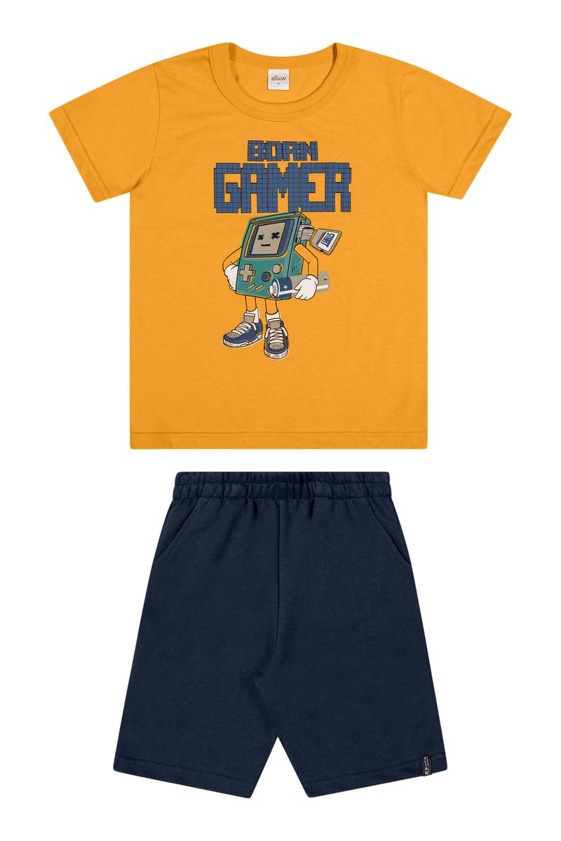 • Conjunto composto por camiseta e bermuda • Feito em meia malha e moletinho • Estampa com temática gamer • Detalhes em puff • Elástico no cós • Possui bolsos laterais • Ideal para momentos de lazer e passeios