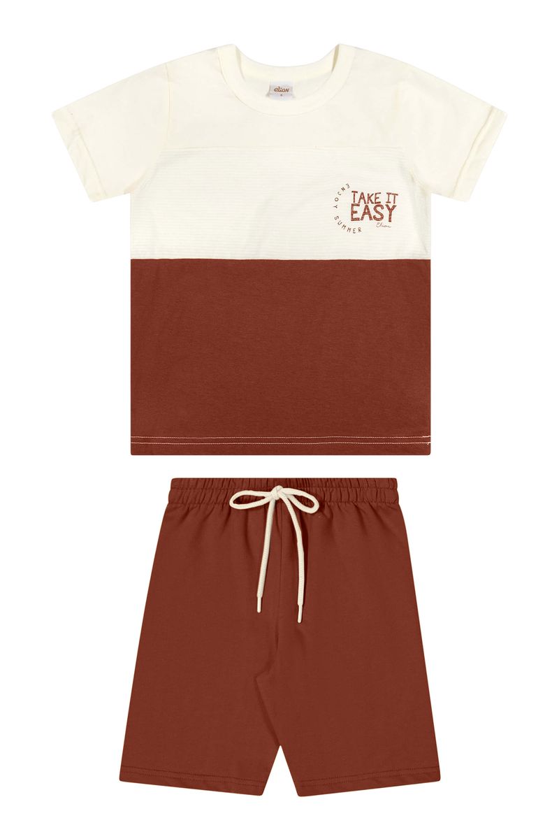 • Conjunto composto por camiseta e bermuda • Feito em meia malha, malha texturizada e moletinho • Possui recorte bicolor • Elástico no cós com cadarço decorativo • Ideal para passeios e ocasiões que pedem looks mais arrumados