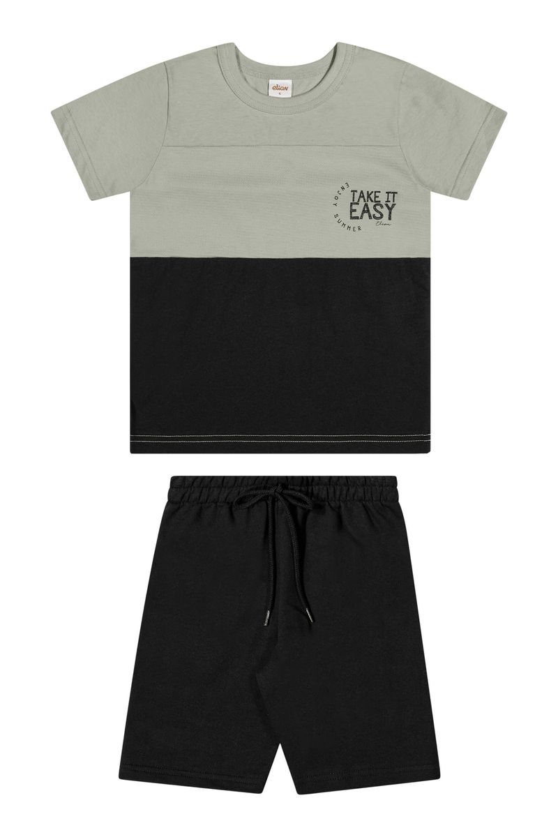 • Conjunto composto por camiseta e bermuda • Feito em meia malha, malha texturizada e moletinho • Possui recorte bicolor • Elástico no cós com cadarço decorativo • Ideal para passeios e ocasiões que pedem looks mais arrumados
