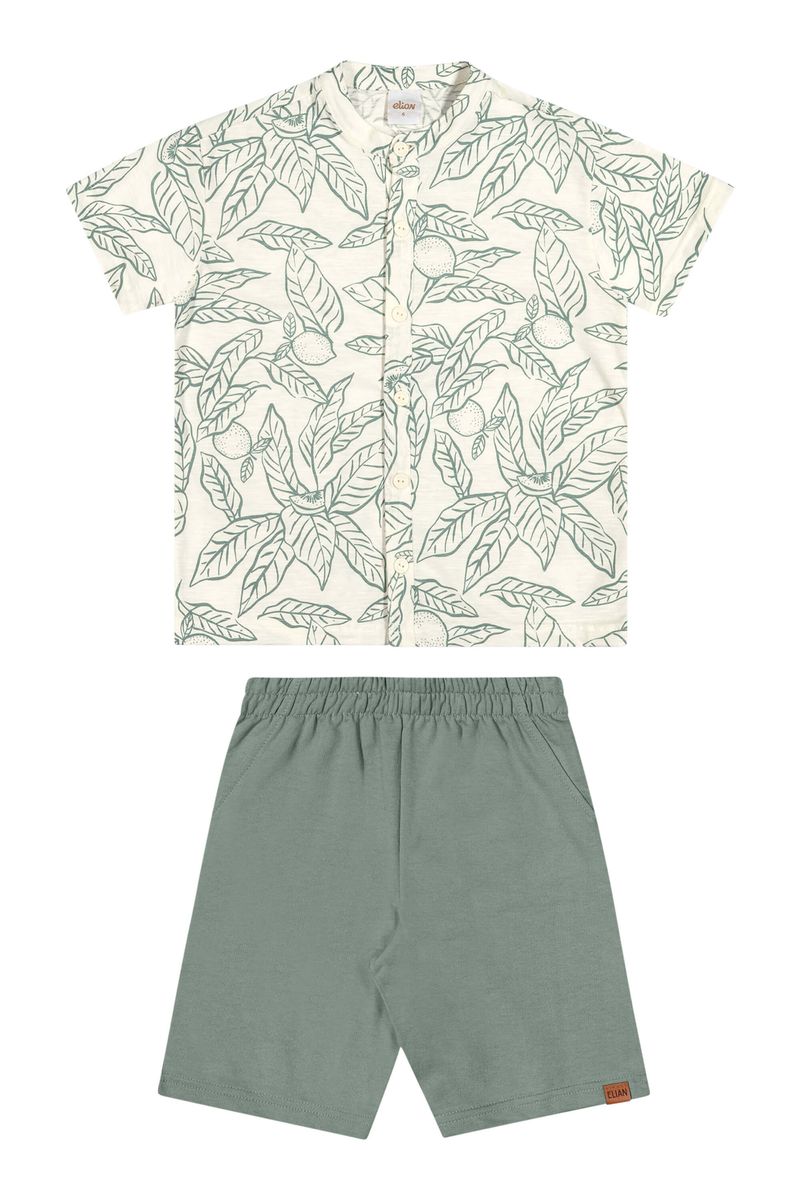 • Conjunto composto por camisa e bermuda • Feito em malha flamê e moletinho • Possui gola padre • Fechamento em botões • Estampa com a temática natureza • Elástico no cós • Ideal para festas, passeios e ocasiões especiais