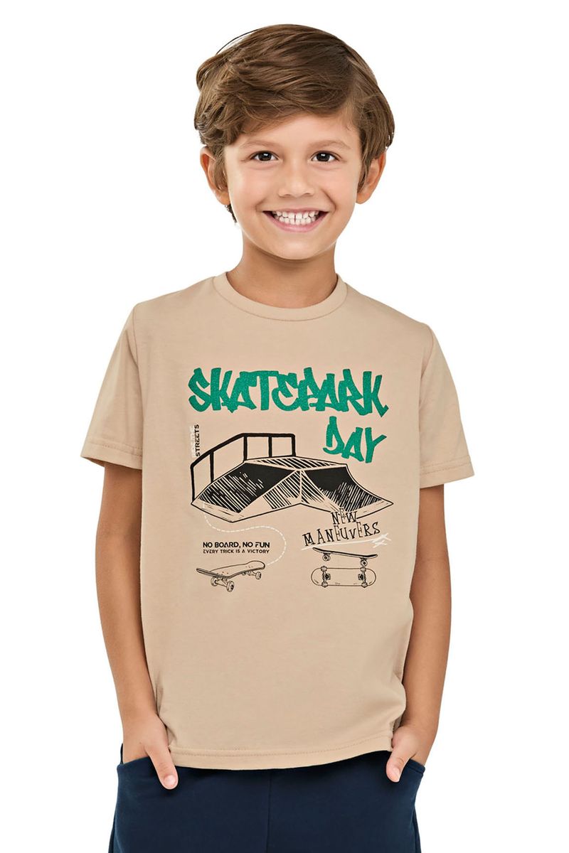 InfantilMeninosCamisetas MeninosCamiseta Infantil Menino Estampa Skate Elian Bege