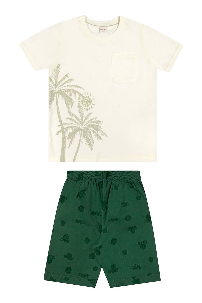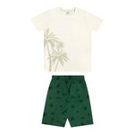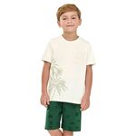 • Conjunto composto por camiseta e bermuda • Feito em meia malha e tecido tricoline com elastano • Estampa tropical com elementos de verão • Elástico no cós • Ideal para momentos especiais e passeios em família