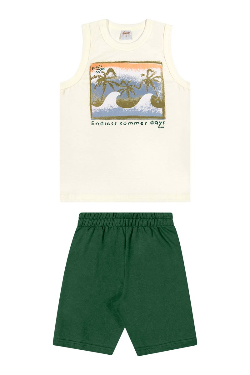 • Conjunto composto por regata e bermuda • Feito em meia malha e moletom sem felpa • Possui estampa frontal • Elástico no cós • Ideal para momentos de lazer