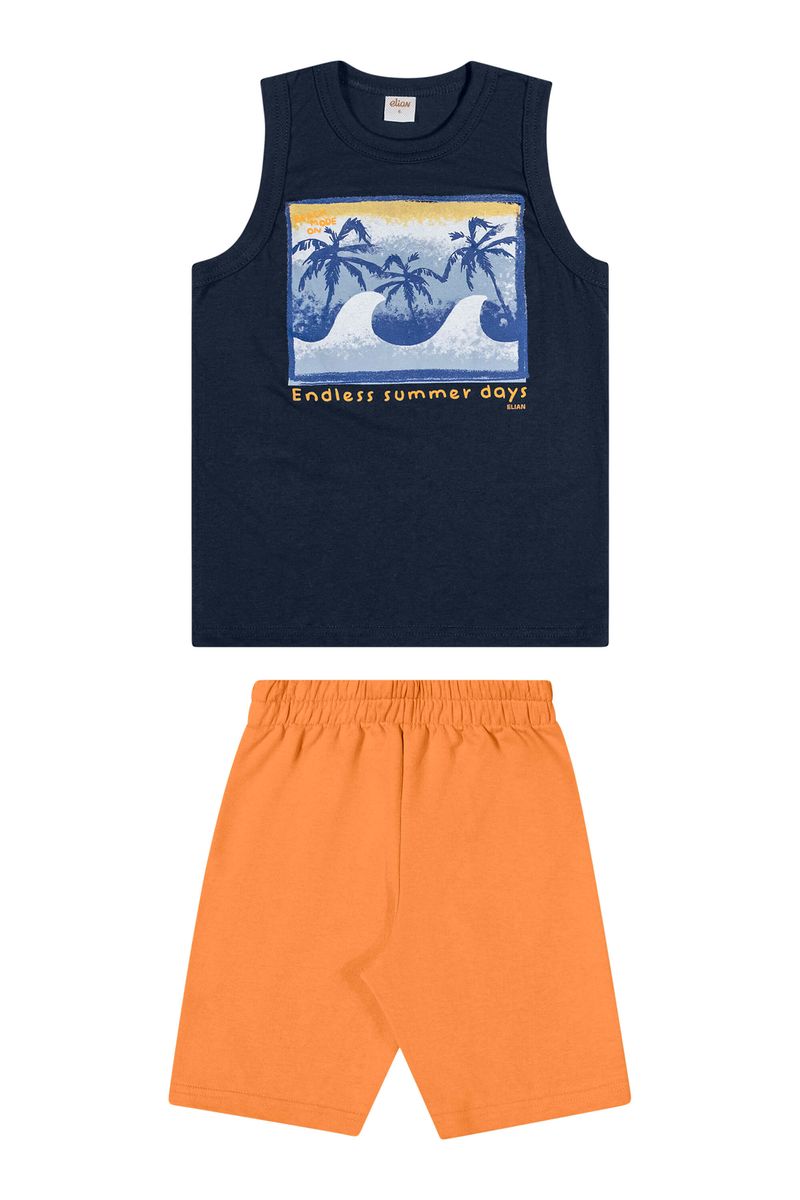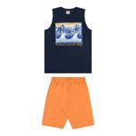 • Conjunto composto por regata e bermuda • Feito em meia malha e moletom sem felpa • Possui estampa frontal • Elástico no cós • Ideal para momentos de lazer
